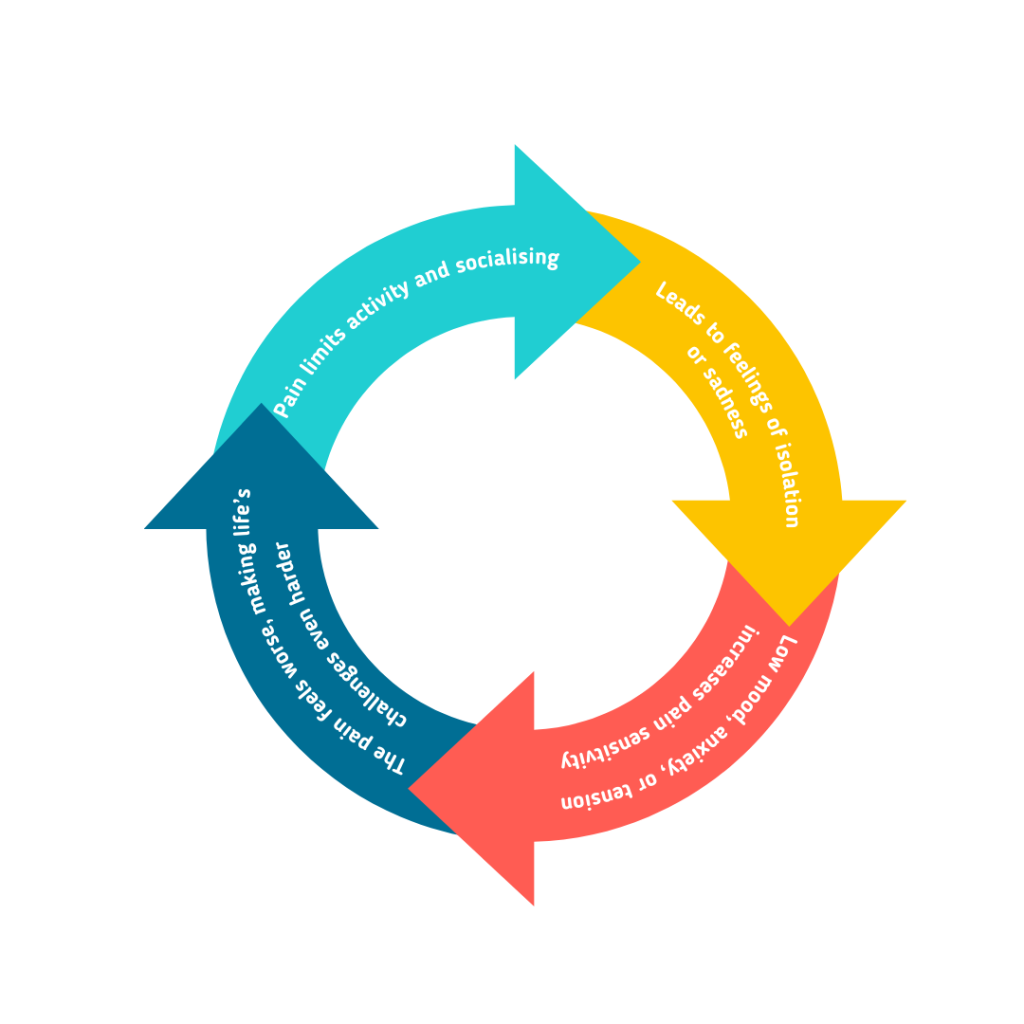 Many people with chronic pain will say their worst days are often their most stressful or lonely. Pain and mental health influence each other and can easily feed into a cycle: